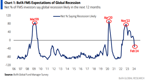 Last year economists were discussing a phenomenon dubbed the ‘vibecession’: ‘the economic vibes were so bad it felt like we were talking the US into a recession’. I.e. talk of a recession was so commonplace the link between sentiment and reality was being called into question – would a recession manifest itself from ‘bad vibes’. With the S&P 500 hitting all-time highs in early February 2024 (its best rally in nearly four decades) the answer is, for the moment anyway, no. Now the market is rallying, lead in large part by the anticipation of rate cuts from global central banks. Although February is historically one of the harder times of the year for equity performance the general market sentiment seems to be broadly very positive. However, this positivity may represent a misguided resurgence of a phenomenon that highlights the perils of over-optimism and subsequently poor economic performance, sometimes even to the extent of recession. This trend suggests that excessive positivity about future economic prospects can initially fuel a boom. However, this often comes at the cost of a later downturn, frequently manifesting as a recession. It’s a classic case of short-term gains versus long-term pains.