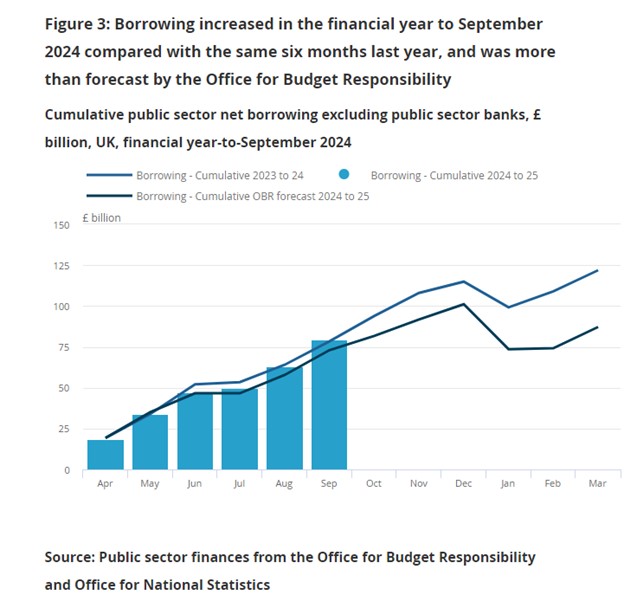 To underline the limited scope the government has, UK public sector borrowing increased in September above official forecasts. Borrowing rose to £16.6bn in September, £2.1bn more than in the same month last year.