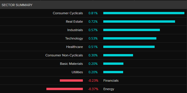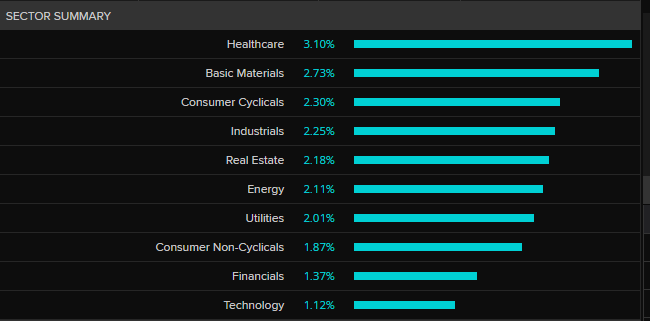 FTSE 250 sectors as of 10.23 (BST) – all showing broad based gains
